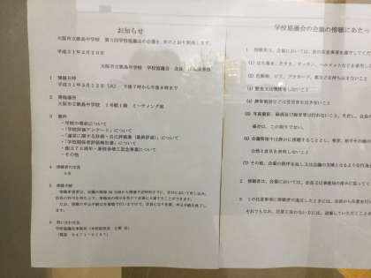 大阪市立歌島中学校 第3回学校協議会の会議を、次のとおり開催します。