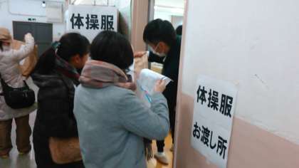 体操服のお渡しの様子です。新入生から体操服が変更になります。また、通学カバンの販売もありました。