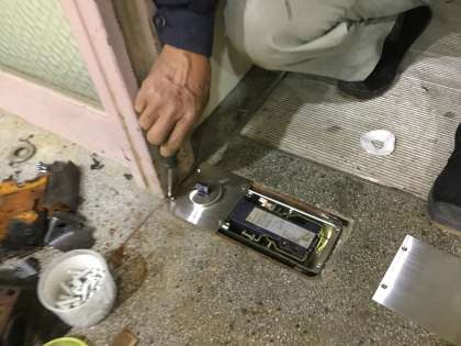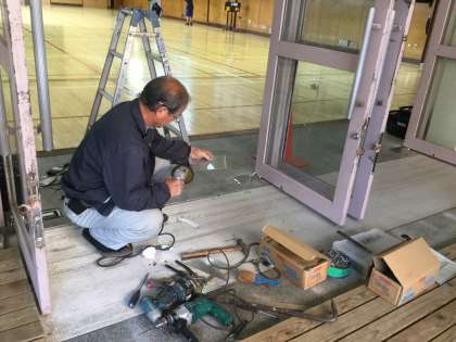 ドアと柱の隙間を利用して作動する装置のため、微妙な調整を繰り返しながらの作業でした。閉まるスピードもねじで調整して、ちょうどのタイミングになりました。