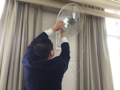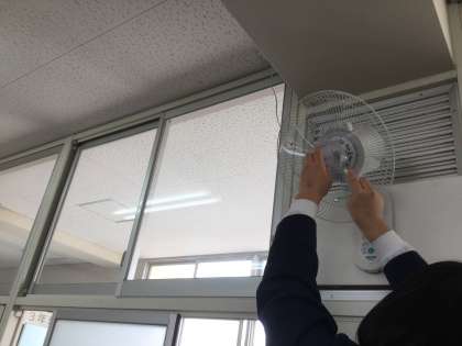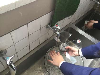 背伸びをして扇風機の羽根やガードを取り外して、丁寧に洗っているグループをどのクラスでも見かけました。扇風機は、毎学期末にきれいに洗ってもらっていても、すぐにホコリが吸い付汚れてしまいます。教室では大活躍の電気製品ですね。