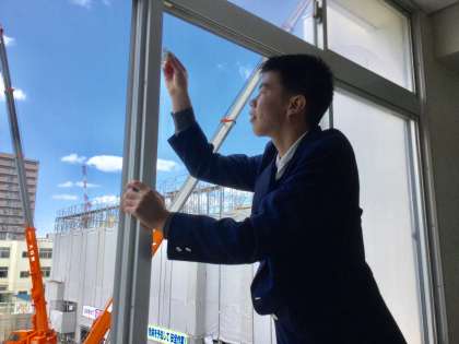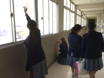 廊下ではアルミサッシのガラスや窓枠を磨いている人も多く見かけました。
