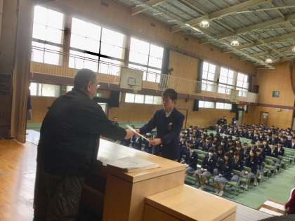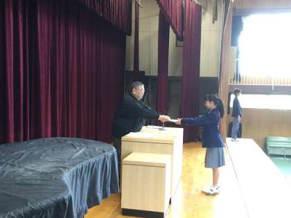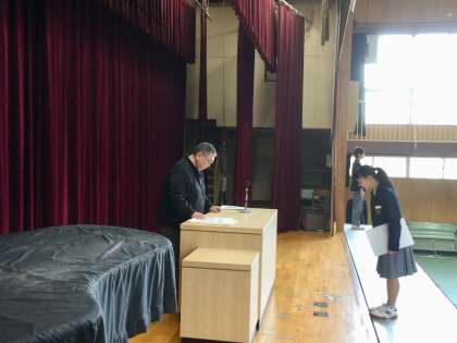 舞台上での卒業証書の受取では、卒業証書を両手で受け取り、一歩下がって左わきに抱えて礼をし、方向転換をしてから気をつけをした後、降壇をしました。