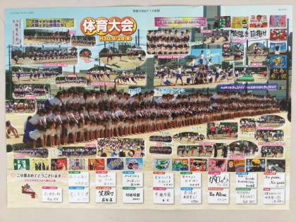 また体育大会のマスゲームや学級旗のカラー写真が多く掲載されています。