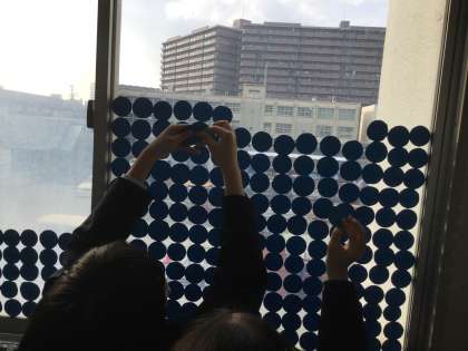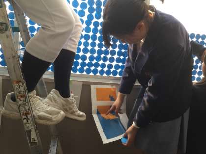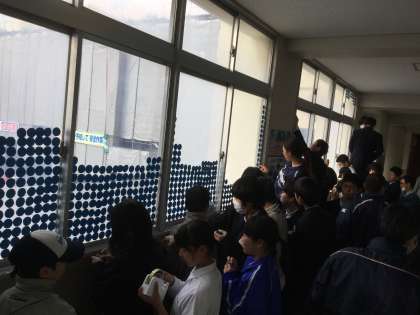 3月12日(火)の夕方、1号館の2階〜4階の廊下で、1・2年生の生徒と教師が協力して作品制作をしました。