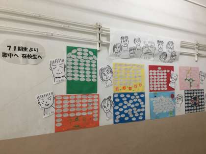 3号館の1階廊下に3年生から、1・2年生へのメッセージの掲示がありました。