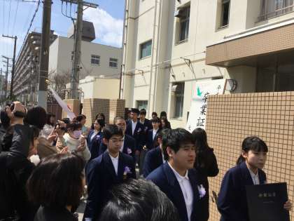 天気にも恵まれ春の陽ざしを浴びて、祝福の言葉をいっぱいいただきながらの列となり、生徒達は巣立っていきました。