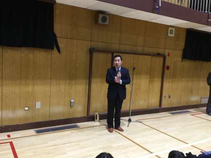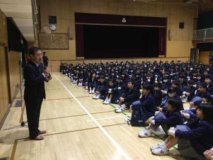 桜の花は冬の寒さが厳しいほど、大きく美しい花が咲きます。皆さんが勉強に部活動に一生懸命頑張れば、将来素晴らしい花が咲きますと話されました。