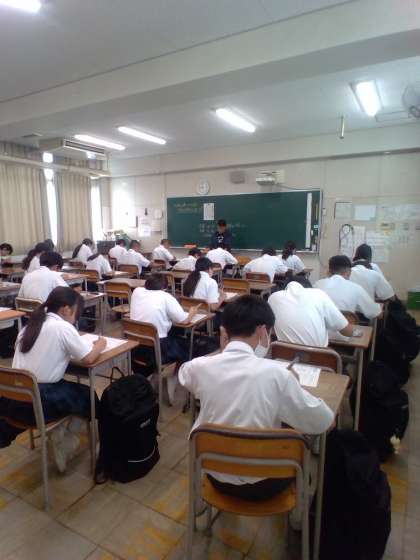 今日は3年生は実力テスト。1・2年生は課題テストを行っています。