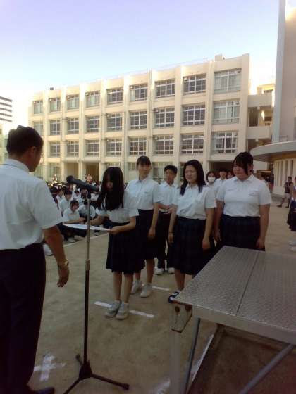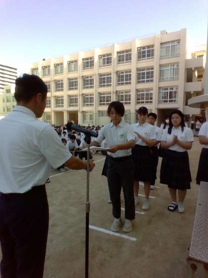先週のオンライン集会でも紹介しましたが、夏休みに獲得した表彰状の伝達を行いました。