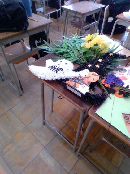 まだまだ暑く、ハロウィンという感じではありませんが、教室の飾りつけがあると、季節感が出て、気持ちも切り替わるかもしれませんね。