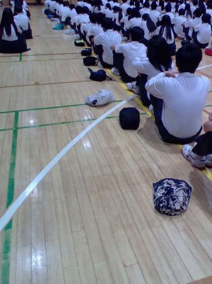 話は変わりますが、集会には自分が履いていた運動靴を一緒に持ち込むシステムなっていますが、靴袋に入れない生徒が少なくありません。