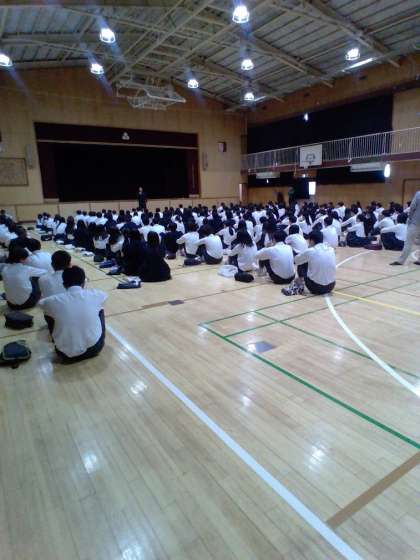 本日の集会では学年主任の丸橋先生より、明日の体育大会についてのことや、来週は授業規律強化週間になることを伝えておられました。