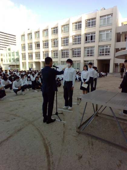 その1 バスケットボール選抜生徒と総合文化祭作品出展者表彰