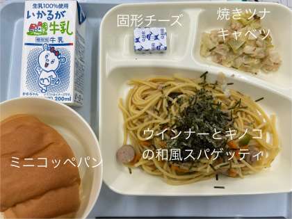 焼きツナキャベツ・・・チキンブイヨンベースでうっすら醤油味で甘みもある。ツナの使い方も給食は秀逸