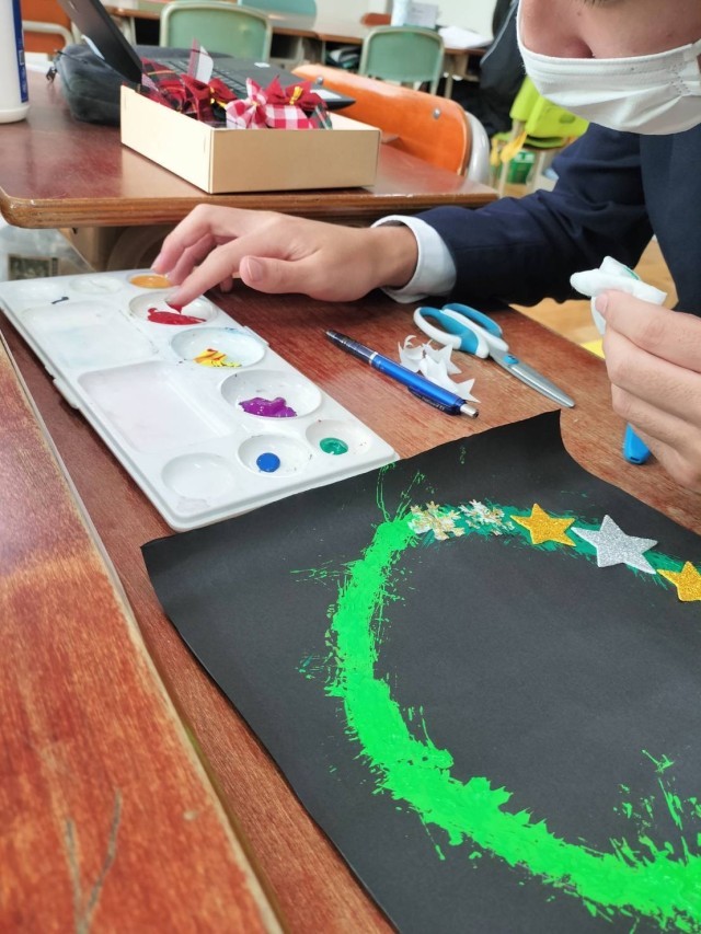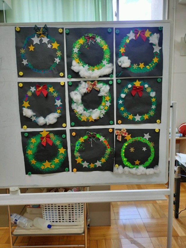 今日はクリスマスリースを作りました。クリスマスソングを聴きながら楽しいひとときになりました。