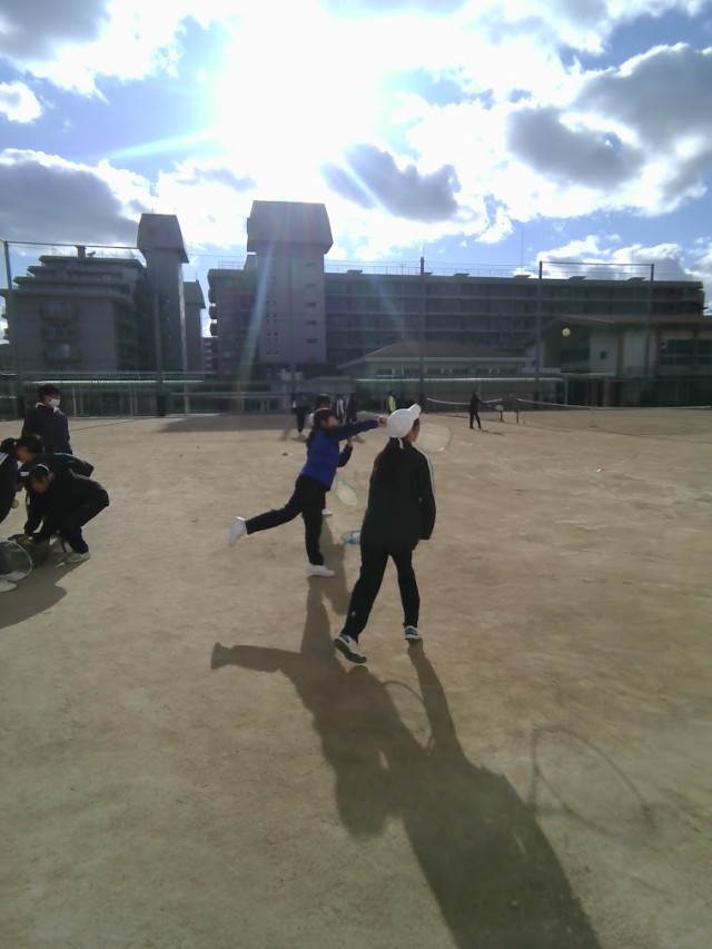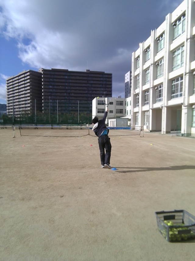女子テニス部はサービス練習やスマッシュ練習を行っていました。