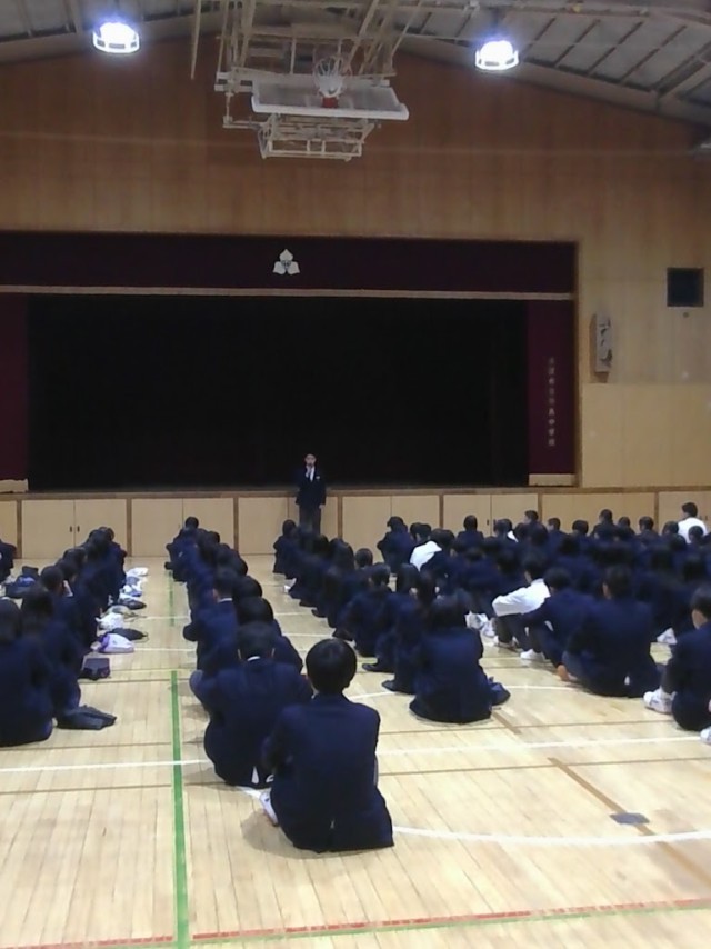 さて、今日は2年生の集会があり、藤本先生からお話がありました。
