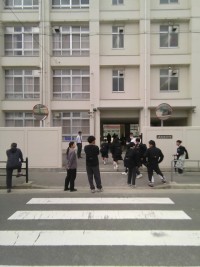 緑道側に立って気づいたのですが、心なしか、生徒たちの登校が早くなってきています。