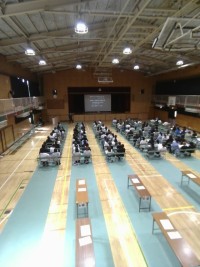 日向ぼっこ現場から体育館の方を見ると、1年生が体育館へ移動しているのが見えたので、行ってみました。