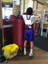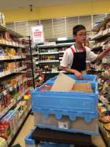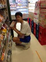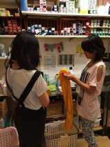 カゴの片付けを頑張っています。 棚のお掃除も大切です。 飲み物の品出しです。