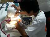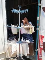 丁寧に商品を並べています。それにしてもお客さんがいっぱい!並べても並べてもどんど...