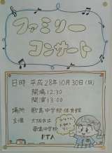 10月30日(日)にPTA主催の「ファミリーコンサート」が歌島中学校体育館にて開...