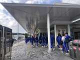 4時過ぎに列をなしたバスが帰ってきました。 停車後すぐに床下のトランクから、旅行...