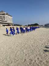 出発までの時間は、ランニングに、ラジオ体操、、普段体育でやっていることも浜辺でや...