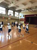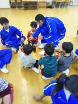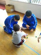 ボールを使用しての授業では、ボールを上方に放り上げている間の、拍手の回数を競いま...