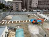 プール建設工事現場では、2月上旬にプールサイドの基礎コンクリート打設が行われまし...