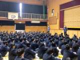 2月24日、6限目に2年生は体育館にて、合唱コンクールに向けて、舞台への入退場の...