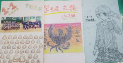 1年生は、学年の終わりに各クラスで文集を作成しました。行事などが例年どおりにはできませんでしたが、その中でがんばったようすや、クラスでの楽しい思い出が凝縮されています。