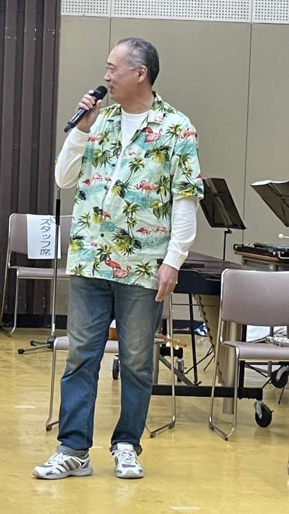 注目は、4曲めの加山雄三メドレーで海の男、PTA会長、竹本さんが登場し、アロハシャツを着て加山雄三の代表曲「君といつまでも」を熱唱して下さいました。あいにくの雨でしたが、会場は笑顔につつまれていました。