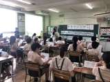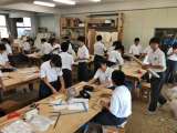 美術です。 1組は切り絵をしています。白黒の画用紙から美しい世界をつくりだしてい...
