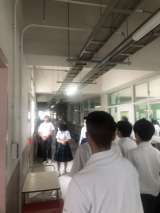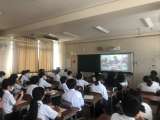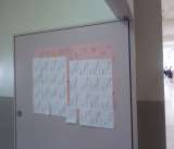 先日のいじめを考える日に各クラスで書いた行動宣言をひとつにし、大きなお寿司を作り...