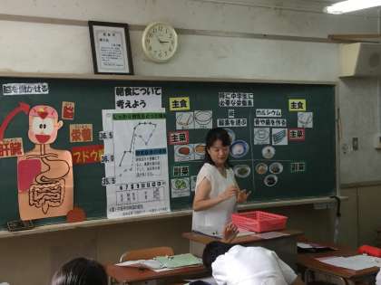 柏里小学校栄養教諭の森先生に来ていただき、小学校5年生時の学びをベースにして、朝食の働きを教えていただきました。生徒達は班形式になって、ワークシートを書き上げていきました。
