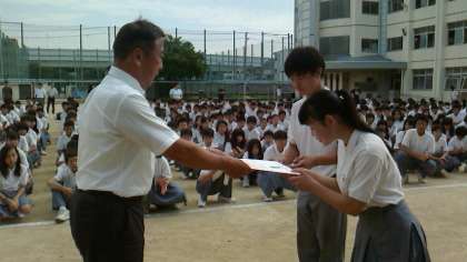 夏休みに行われた部活動の表彰がありました。