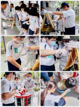 見学の後は、いよいよ採密体験です。 板から蜂蜜をそぎ落としていきます。 その後、...