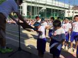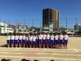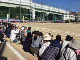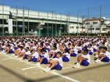 全員がグラウンド中央朝礼台前に整列して、「よろしくお願いします」とあいさつ。 花...