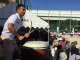 バチがしなるほど大きく打ち鳴らされる、花田先生の太鼓に合わせての演技です。 飛行...