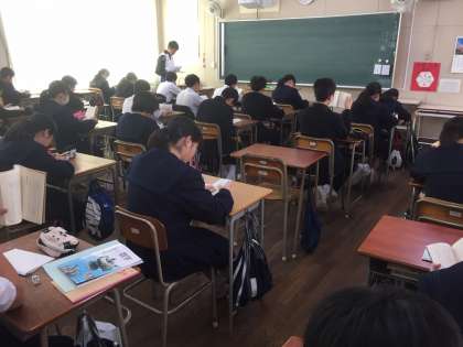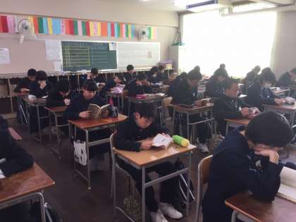 昨日、本校での図書館利用の様子をお伝えしましたが、こんな取り組みもしています。2年生では1年生から朝読書を実施し、活字に慣れる取り組みを行っています。朝の限られた時間で本を読むことで集中力と読む力を養っています。
