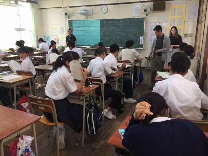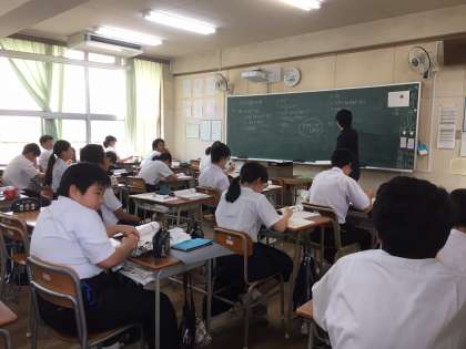 英語の授業では、C-NETの先生と英語科の先生2人との英語の授業の様子です。会話を重視した授業で、ペアワークを多く取り入れた授業がいつも行われています。