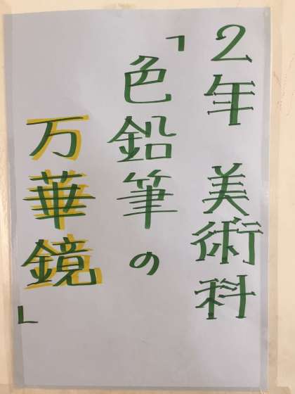 昨日、1年生の美術の授業をお伝えしました。美術の授業を通して1年後はどれぐらいの作品を作成できるか、2年生の春休みの課題『色鉛筆で曼茶羅を描く』を見てください。ご来校の際は西階段3階正面に貼っています。