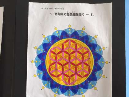 次回はコンパスと色鉛筆で仕上げたタイル模様をお伝えします。