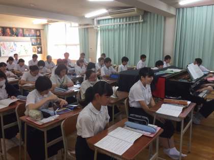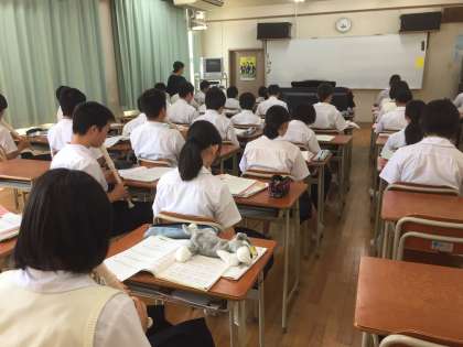 音楽の授業では、夏に因んだ『われは海の子』をリコーダーで演奏していました。また『翼をください』を楽しそうに歌っていました。