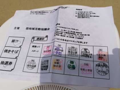 無事、通過印を集めることができました!美味しそうな豚汁と焼きそばがお出迎えです。