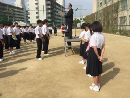 全校集会の際に表彰伝達が行われました。陸上部の3年生二人が大きな記録を残し、表彰されました。また野球部では西淀川区のスプリング杯で優勝し、表彰されました。