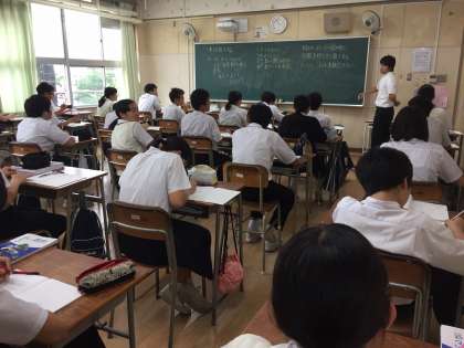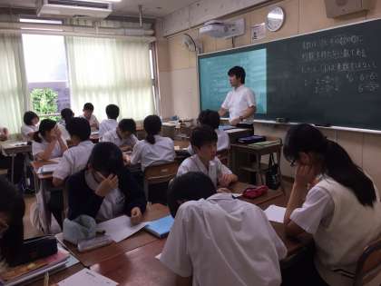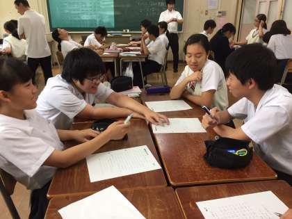 素因数分解の学習内容の授業が行われ、グループ学習で生徒たちは教え合い、深い学びと気づきを得ていました。