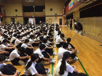生活指導の先生から、安全面、風紀面についてお話がありました。本校をより良い学校にするために意識を高めていきましょう。また今週は1年生が一泊移住、2年生が職業体験、3年生が実力テストと高校出前授業があります。校長先生からのお話にもあったように、人の意見を聞き、それを取り入れていくことで本校をより良い学校にしていきましょう!!