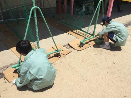 母校の小学校で職業体験をしている生徒たちは、校内の整備された場所が毎日管理作業員の方たちが綺麗にしてくれていることに気づいたようです。作業を始めて数時間しか経っていませんが生徒たちが一回り成長したように見えました。また区役所では、毎年いのちのふれ合い授業でお世話になっているNPO法人にしよど にこネットで絵本の読み方を教えていただき、乳幼児への読み聞かせに挑戦しました。